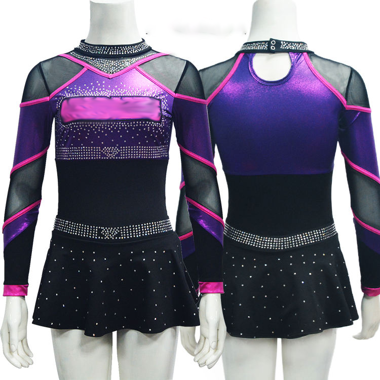 ชุดเชียร์ลีดเดอร์พลอยเทียมแวววาวสีทองสำหรับผู้หญิงชุดยูนิฟอร์มเชียร์ลีดเดอร์