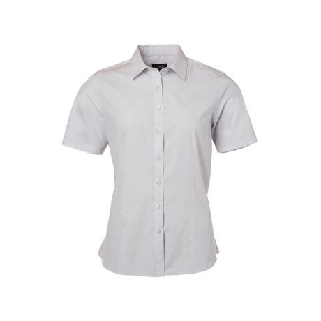 Ladies' Short Sleeve Poplin Shirt Classic Formal Loose-Fit XL Size Easy-Care Blended Silk Fabric for Office and Party