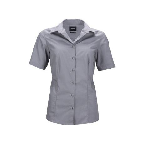 Ladies' Short-Sleeved Business Shirt Formal Silk Poplin Fabric Embroidered Pattern Size XL-Durable Blended Classic Design