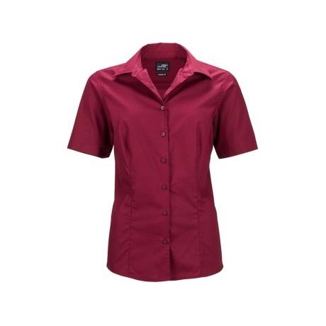 เสื้อเชิ้ตผ้าปอปลินแขนสั้นสุดคลาสสิกของผู้ชายทำจากผ้าผสมที่ดูแลรักษาง่ายสำหรับผู้หญิง