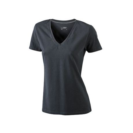 เสื้อยืดคอวีผ้าสแปนเด็กซ์สำหรับผู้หญิงเสื้อยืดตัวเดียวยืดหยุ่นใส่สบาย