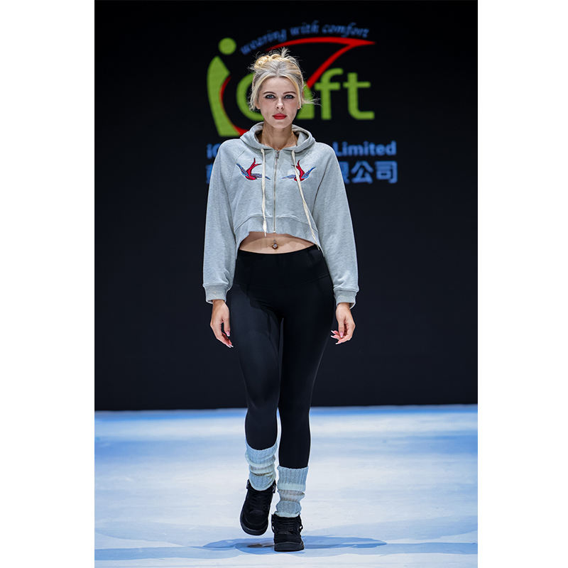 เสื้อมีฮู้ดสไตล์วินเทจสำหรับผู้หญิงเสื้อครอปมีฮู้ดโชว์สะดือพิมพ์ลายตัวอักษรปรับแต่งสโลแกนได้