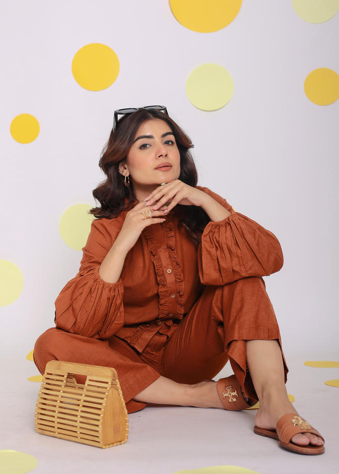 Product Name:Brown Relaxed Back Elastic and Buttoned Formal Linen Pants