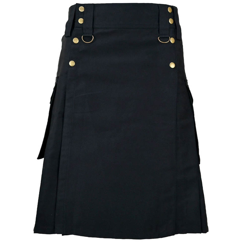 กางเกงคิลท์อเนกประสงค์สีดำสำหรับผู้หญิง มี 6 กระเป๋า ตกแต่งกระดุมทองเหลือง สไตล์สก็อต ฮายแลนเดอร์ แฟชั่นทันสมัยสำหรับผู้หญิง ปี 2026