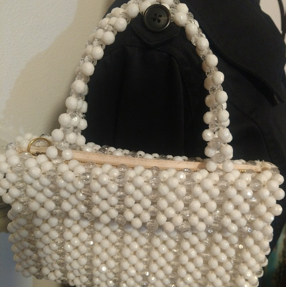 กระเป๋าคลัทช์สะพายไหล่สไตล์วินเทจสำหรับสุภาพสตรีสีเงินปักเมล็ดลูกปัดสายสลิงกระเป๋าถือไข่มุกสำหรับฤดูร้อน