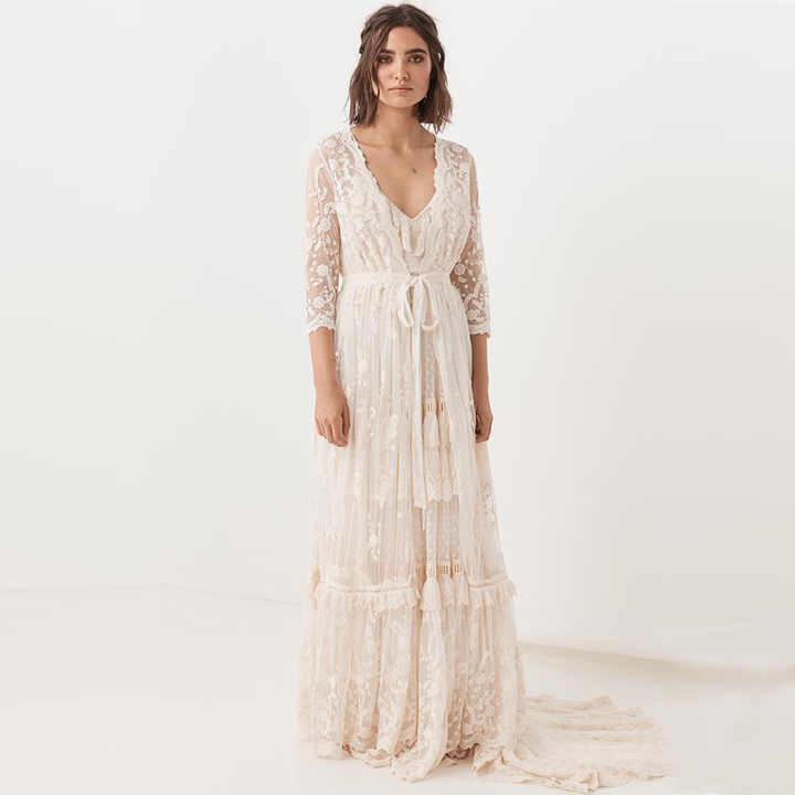ชื่อผลิตภัณฑ์:ชุดกิโมโนปักลูกไม้ยาวถึงพื้นสำหรับผู้หญิง Maxi Lo