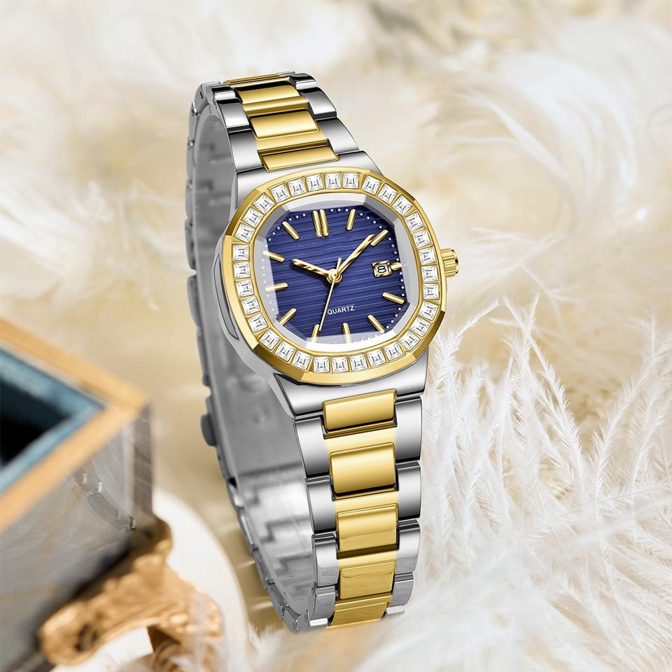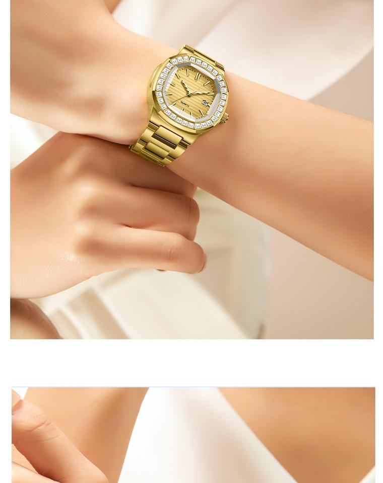 นาฬิกาผู้หญิงพร้อมนาฬิกาข้อมือควอตซ์แฟชั่นหรูหราน้ำหนักเบา