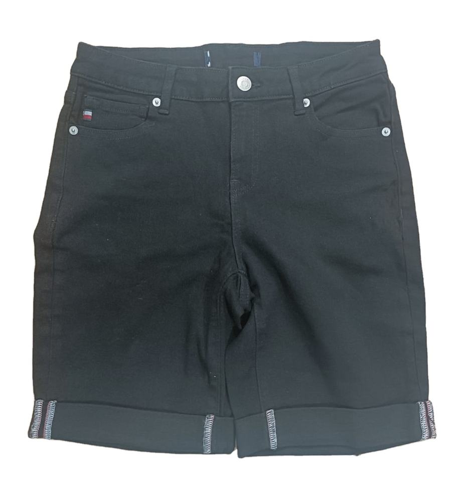 กางเกงขาสั้นไลคร่าขนาดกลางสไตล์สตรีทพร้อมขาคู่และรายละเอียดเย็บปักถักร้อย