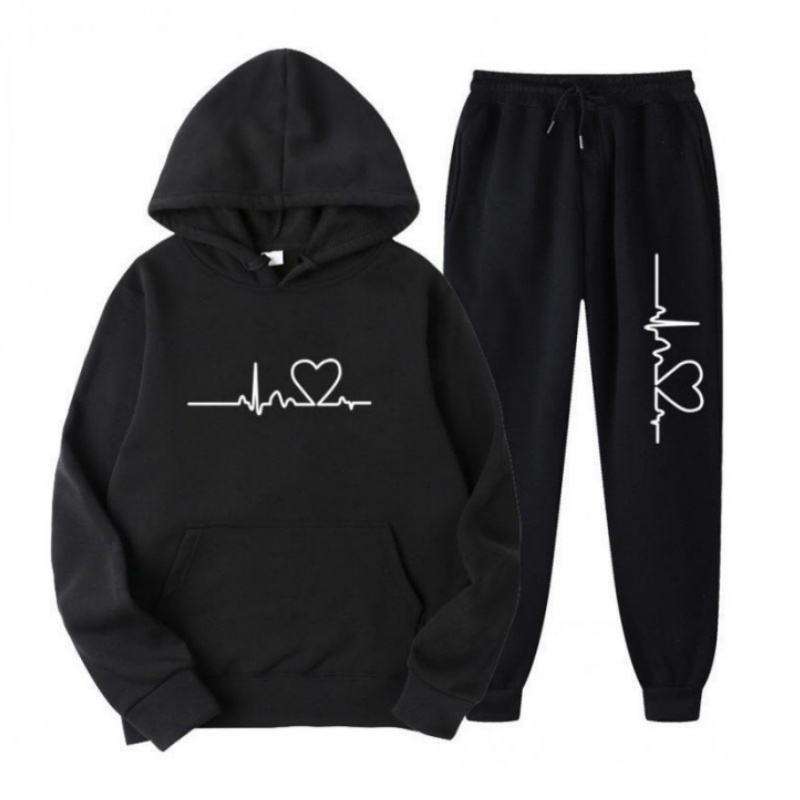 ชุดวอร์มผู้หญิง 2 ชิ้น สำหรับฤดูใบไม้ร่วงและฤดูหนาว ปักลาย อบอุ่น ระบายอากาศได้ดี ปรับแต่งได้ เสื้อฮู้ดแขนยาว กางเกงจ็อกกิ้ง