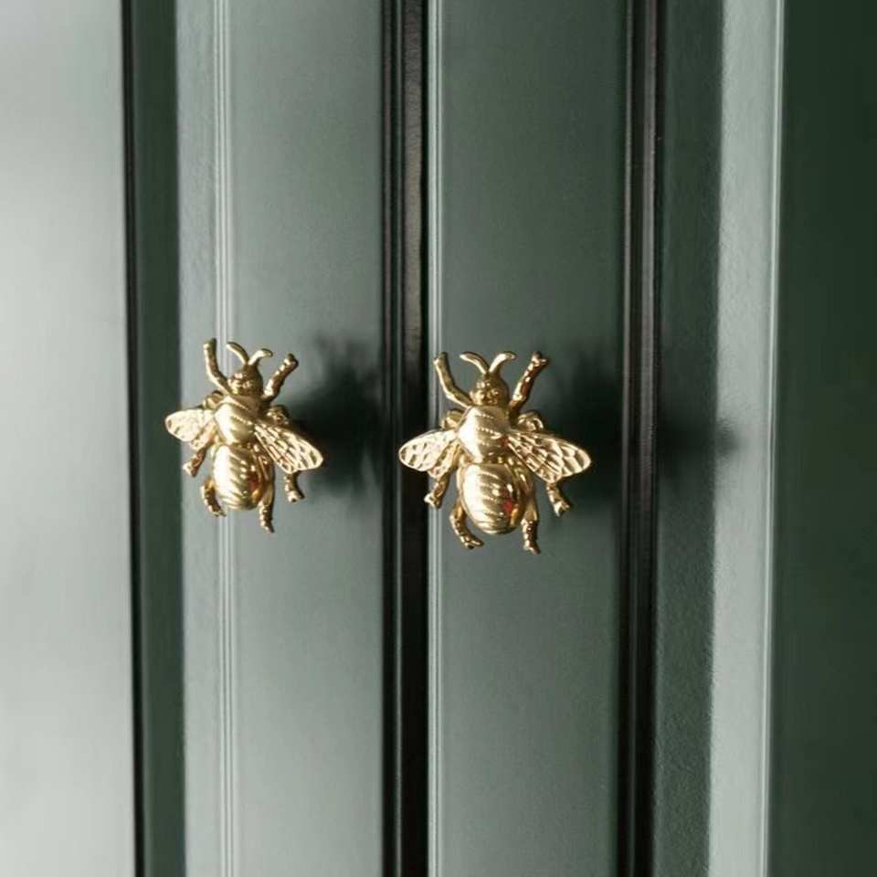 ลูกบิดประตูโลหะสีทองดีไซน์แมลงสำหรับตกแต่งภายในภายนอกอุปกรณ์ฮาร์ดแวร์ลูกบิดทองเหลืองคุณภาพสูง