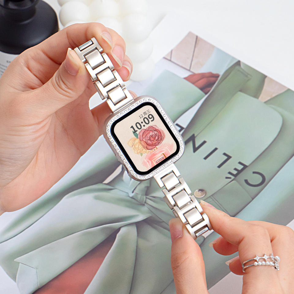 สายนาฬิกาสแตนเลสสตีลบางสำหรับสุภาพสตรีรุ่น10 9 8 7 SE2 41มม. 44มม. เปลี่ยนได้