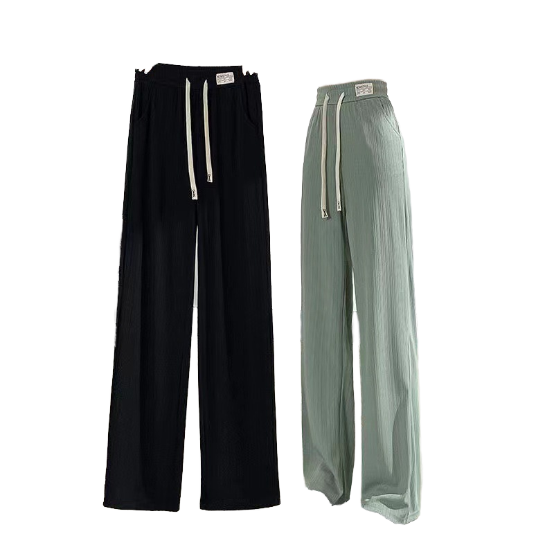 Lady Thin Long Casual Breathable Anti-Wrinkle High-Waisted Flat-Front Drawstring Loose Wide Leg Spring Summer Polyester Pants