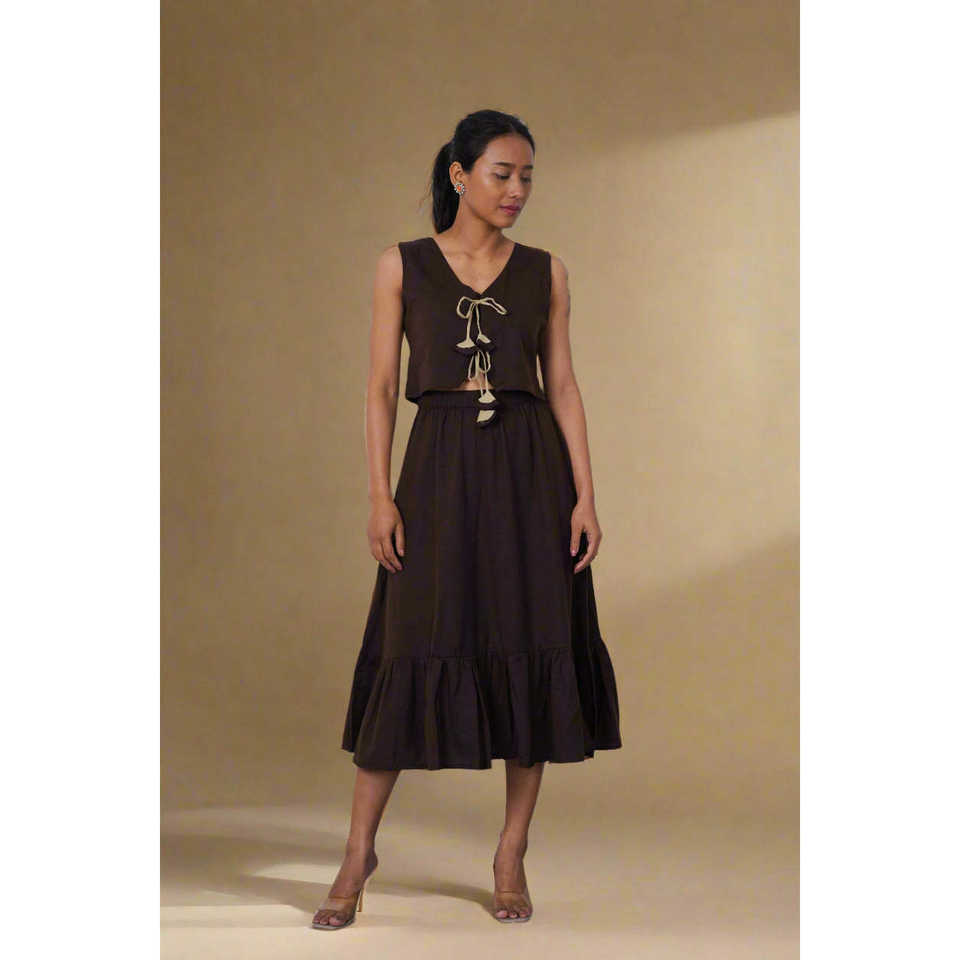 ชุดกระโปรง Lady's Cocoa Dusk ผ้าคอตตอนผสมสแปนเด็กซ์คุณภาพสูง ทอแบบถัก ทรงพลีท ความยาวปานกลาง สไตล์ลำลอง พิมพ์ลาย สำหรับใส่ในชีวิตประจำวัน ฤดูร้อน มีหลายขนาด