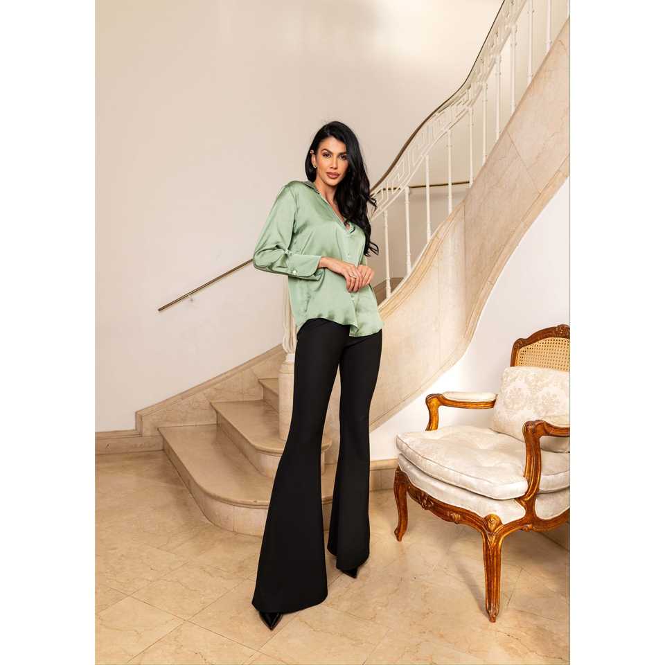 เสื้อเชิ้ตแขนยาวลำลองติดกระดุมพร้อมโลโก้ด้านหน้า