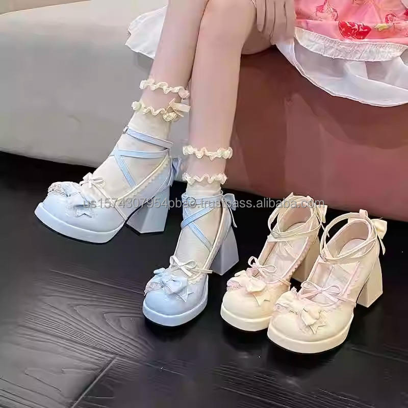Lady's Stylish and Cute Mary Jane Style High Heels Square Heels and Round Toe with Thick Straps for Party Occasions