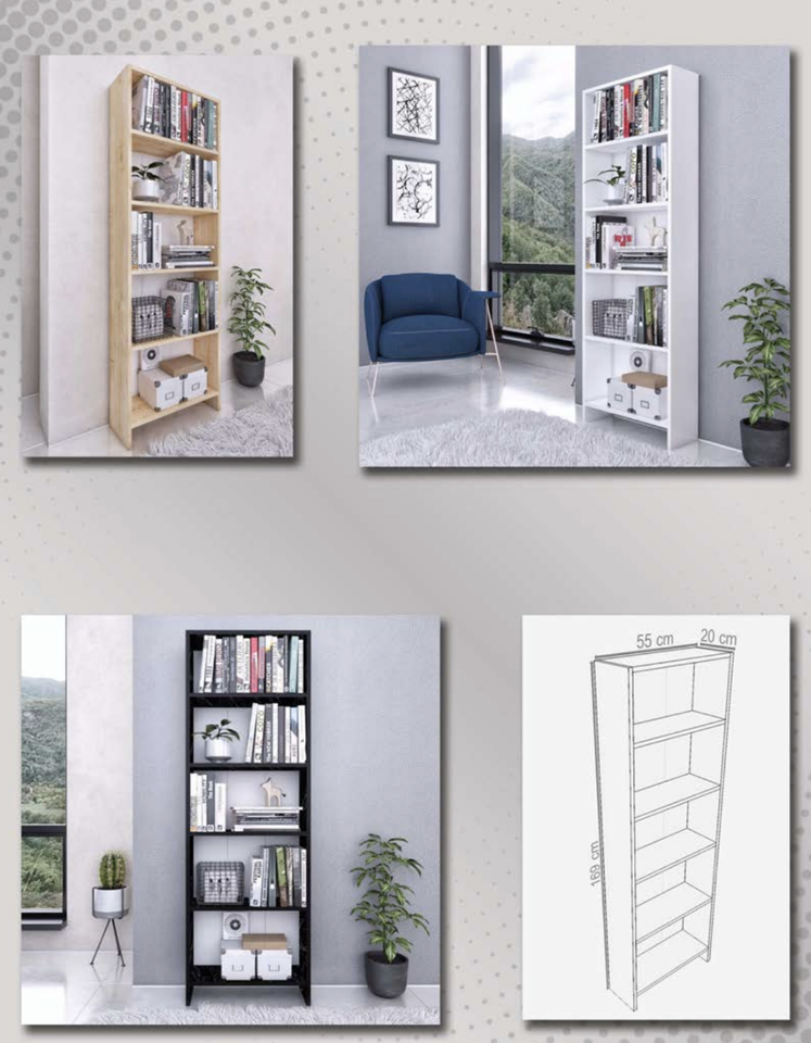 ตู้หนังสือแบบตั้งพื้น 5 ชั้น Lagom Modern ทำจาก MDF เป็นมิตรกับสิ่งแวดล้อม ทนทาน ใช้จัดเก็บของได้ ประหยัดพื้นที่ ด้านหลังปิด สำหรับบ้าน สำนักงาน และห้องนั่งเล่น