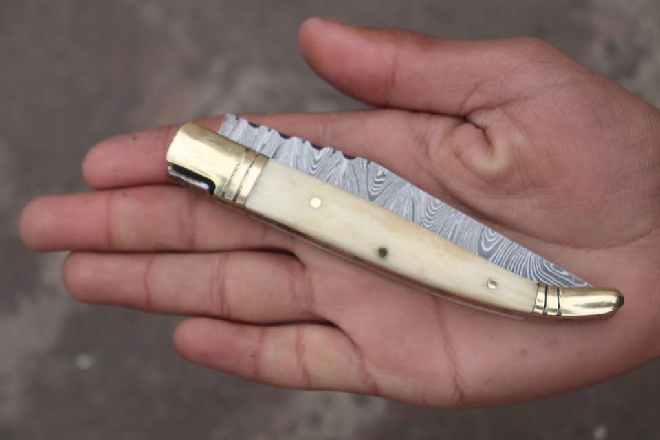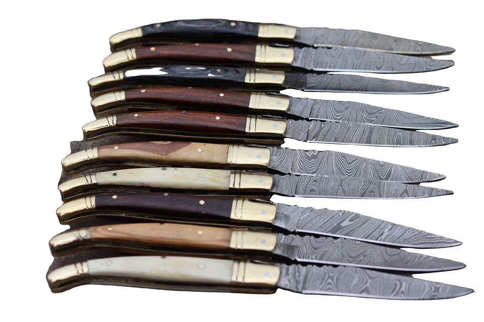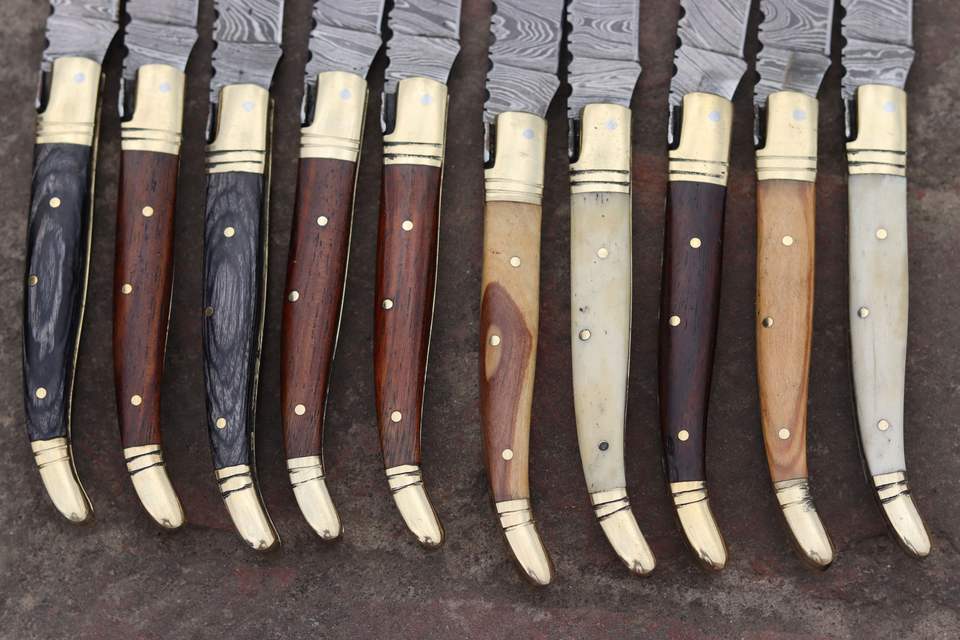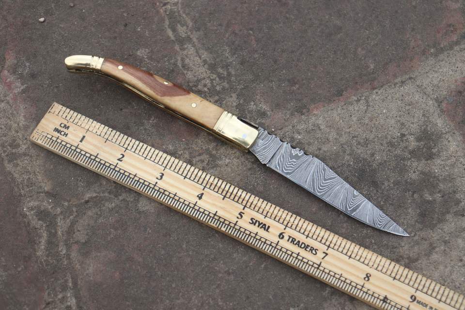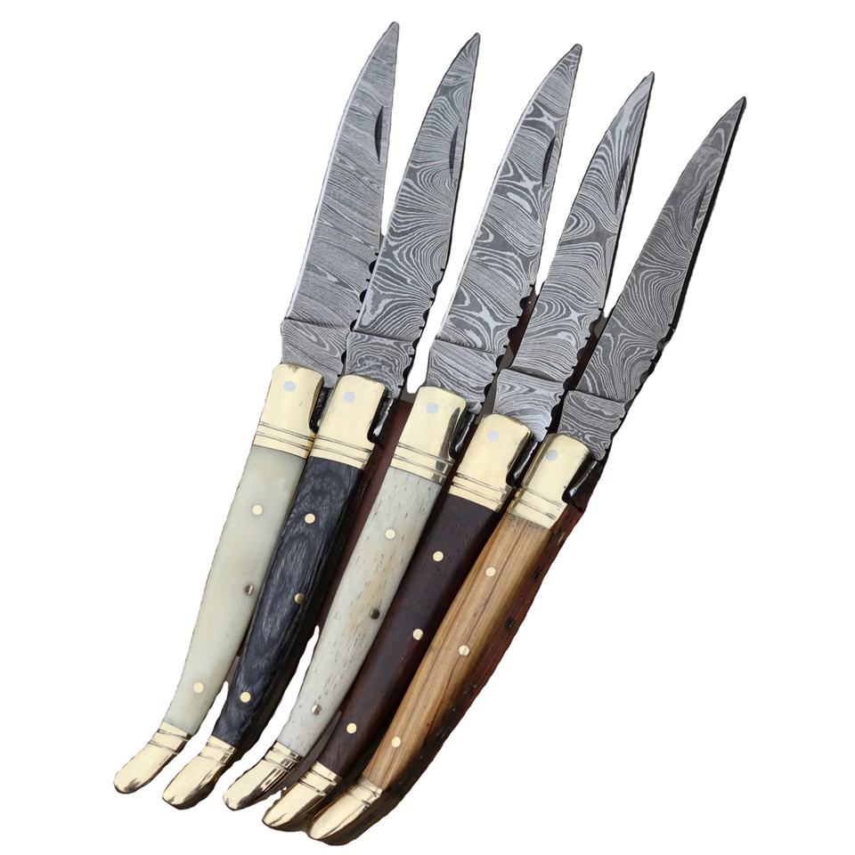 มีดพับ Laguiole ทำจากเหล็กดามัสกัส ด้ามไม้ สำหรับการล่าสัตว์กลางแจ้ง งานหนัง และงานอุตสาหกรรม