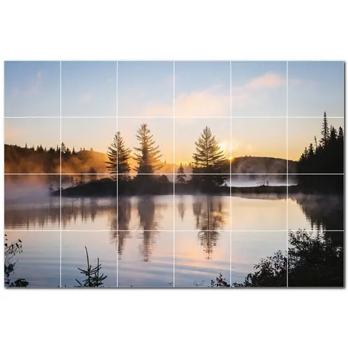 ภาพจิตรกรรมฝาผนังกระเบื้องเซรามิกลายทะเลสาบ PT500787 72 \ "W x 48 \" H ชุดกระเบื้องผนังขนาด24 12X12