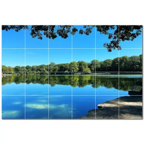 ภาพจิตรกรรมฝาผนังกระเบื้องเซรามิกลายทะเลสาบ PT500796 72 \ "W x 48 \" H ชุดกระเบื้องผนังขนาด24 12X12