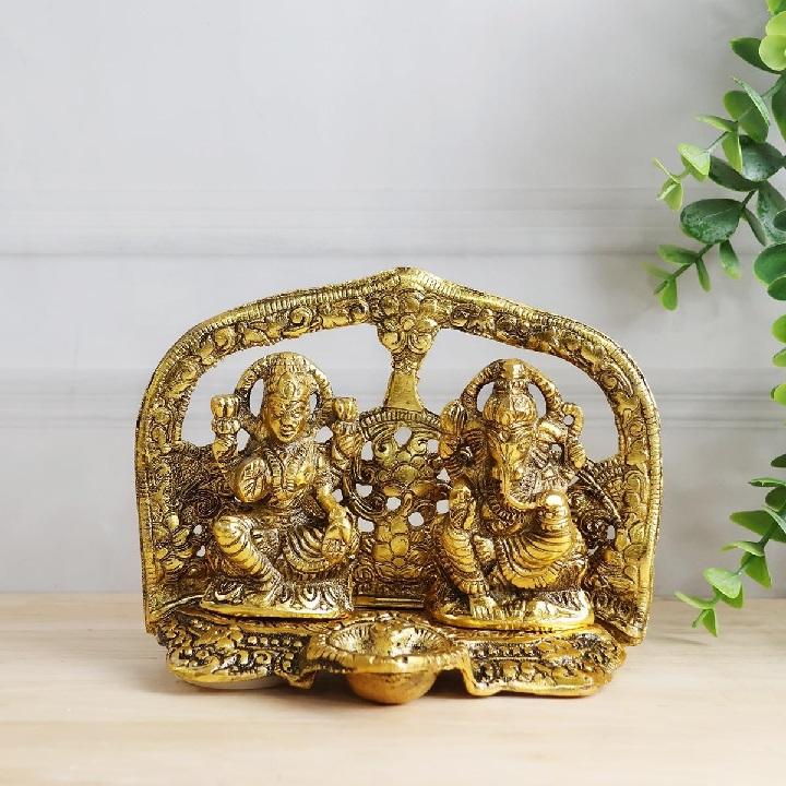 รูปปั้นเทวรูป lakshmi ganesh กับ Diya สำหรับบ้าน, Mandir , Office , Diwali Puja, ของขวัญคืน
