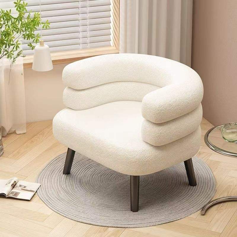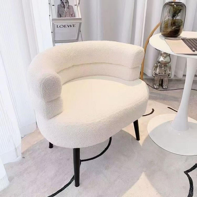 โซฟาบีนแบ็กขนแกะสีขาวนวล เก้าอี้ห้องนอนแบบมีพนักพิง เก้าอี้แต่งหน้า