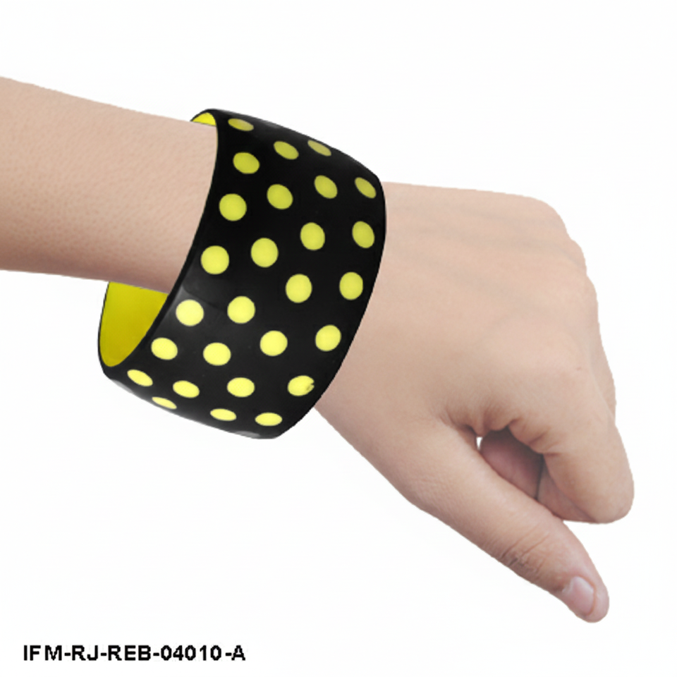 กำไลข้อมือเรซิ่นลายจุดสีดำและเหลืองแบบด้าน ดีไซน์โดดเด่น สำหรับผู้หญิง