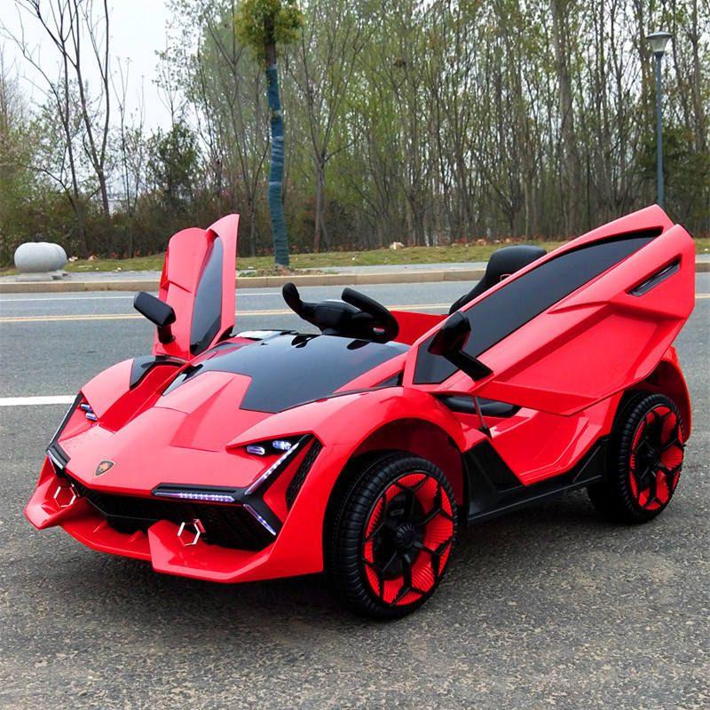 รถยนต์ไฟฟ้าสำหรับเด็กสไตล์แลมโบกินี 12V สีเหลือง ของเล่นรถบังคับวิทยุพลาสติก พร้อมฟังก์ชั่นโยก สำหรับเด็กอายุ 2-4 ปี