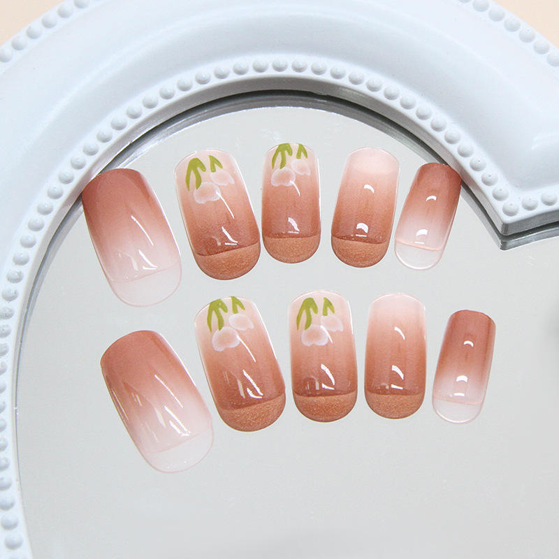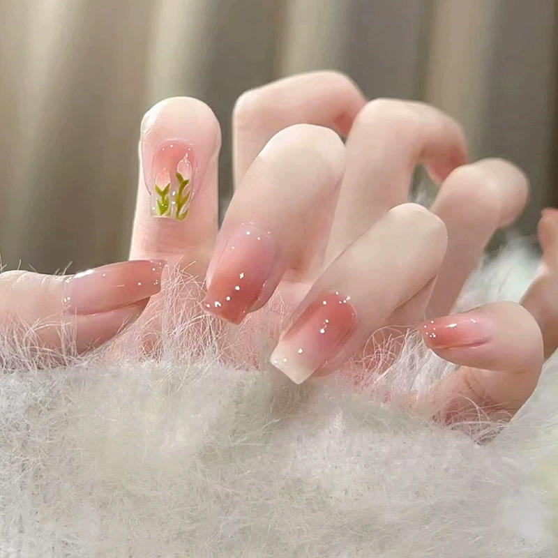 Lamela Gradient Tulip Flower Short Nail Art Tips With Glue 24pcs R728 Artificial Fingernails For General Population