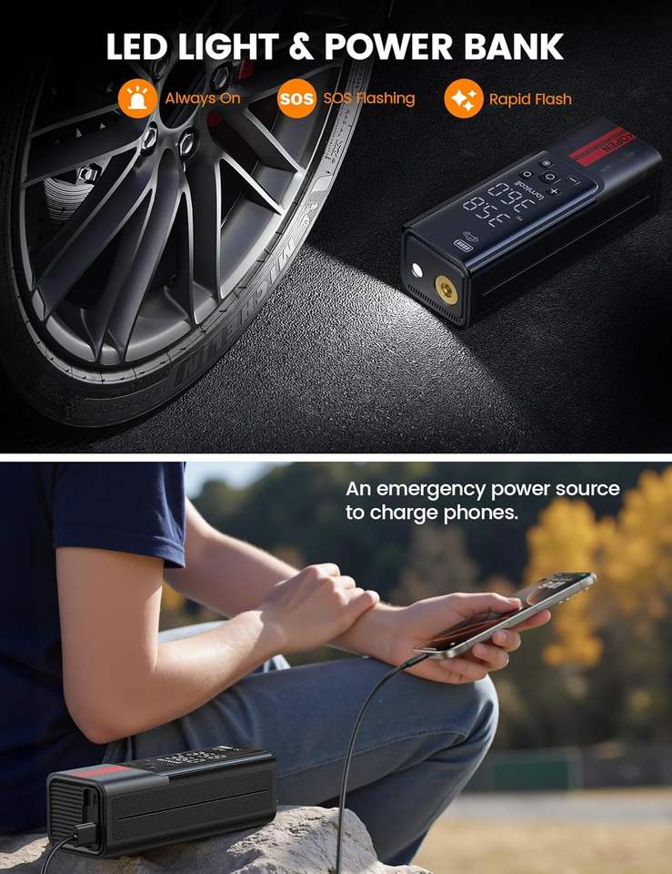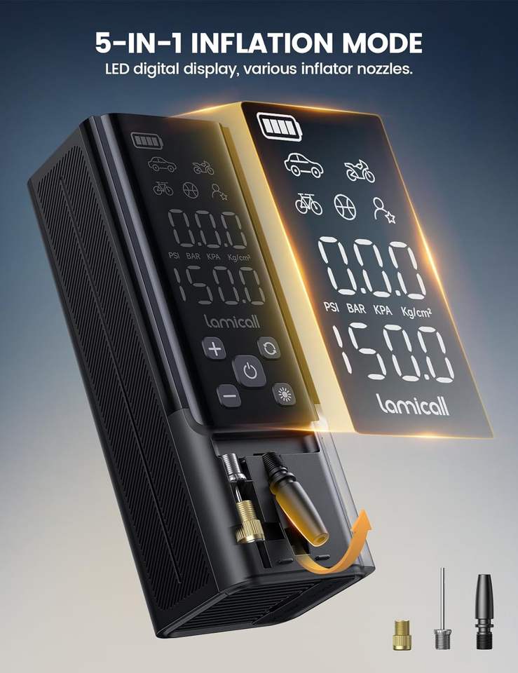 เครื่องสูบลมยางแบบพกพา Lamicall VHEP01-N 150PSI ปั๊มลมไฟฟ้าไร้สายสำหรับรถยนต์ พร้อมเกจวัดดิจิตอล