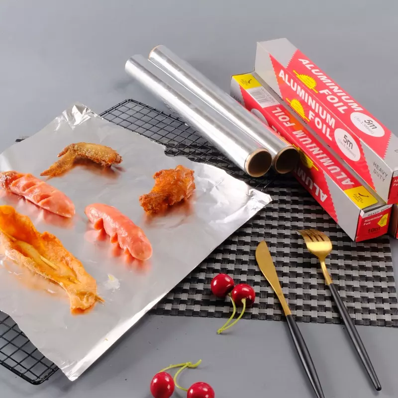 ม้วนฟอยล์อะลูมิเนียมสีเงินสำหรับใช้ในครัว ปิ้งย่าง และอบขนม - บริการตัดและดัดตามขนาดที่กำหนด ใช้ได้กับอาหาร