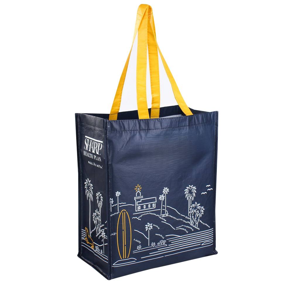 กระเป๋าโปรโมชั่นแบบไม่ทอเคลือบลามิเนต กระเป๋าสะพายไหล่มีซิปแบบไม่ทอ สายสะพายพลาสติก PP แบบกำหนดเอง กระเป๋า RPET อเนกประสงค์