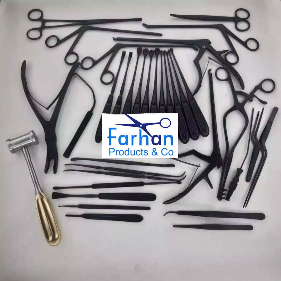 ชุดผ่าตัดผ่าตัดเคลือบสีดำ35ชิ้นเครื่องมือผ่าตัดออร์โทพีดิกส์