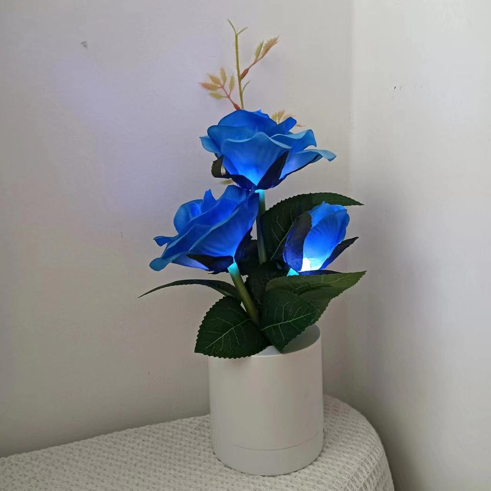 โคมไฟประดับห้องนอนดอกกุหลาบสีแดงสีฟ้าตกแต่งโต๊ะของขวัญ2223 uionen