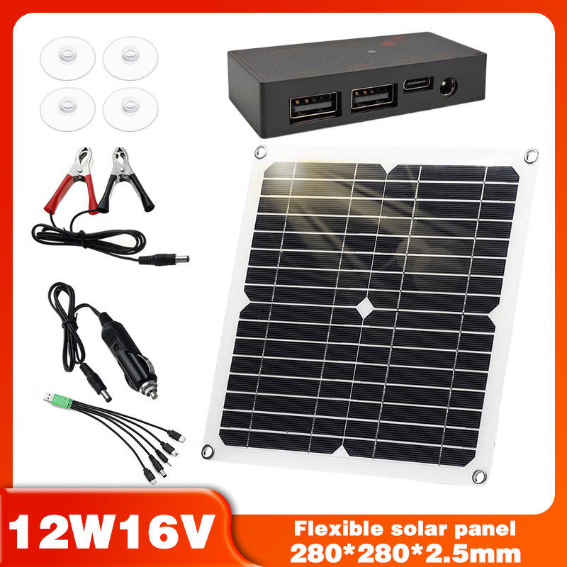 แผงโซลาร์เซลล์ Lan Aoyue 12W 5V 12V 18V พร้อมพอร์ต USB สำหรับชาร์จไฟ เหมาะสำหรับการเดินป่าและตั้งแคมป์กลางแจ้ง
