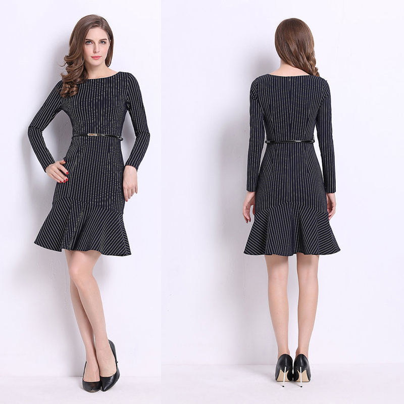 Lancai ชุดเดรสหรูหราสำหรับผู้หญิงชุดเดรสทำงานแขนยาวลายทางแบบทางการ