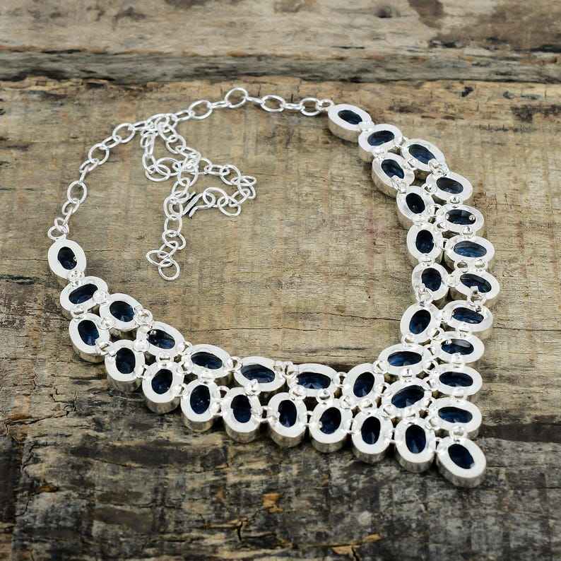 สร้อยคอเงินแท้ 925 ประดับพลอยโทแพซสีน้ำเงินลอนดอน