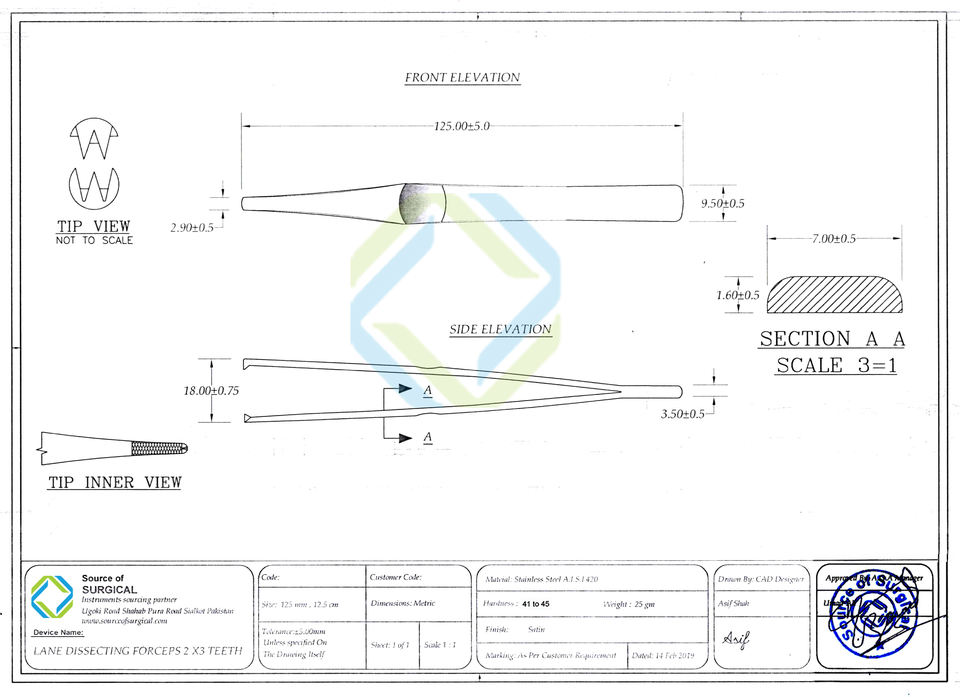 คีมจับเนื้อเยื่อแบบใช้มือ ทำจากสแตนเลส สำหรับการผ่าตัด