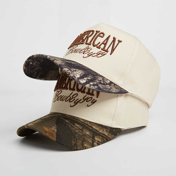 หมวกเบสบอลสั่งทำขายส่ง Lanhai หมวกผ้าฝ้ายลายพรางป่า หมวกแก๊ป 5 ชิ้นแบบสบายๆ หมวกเบสบอลปักโลโก้ หมวกแก๊ปสั่งทำ
