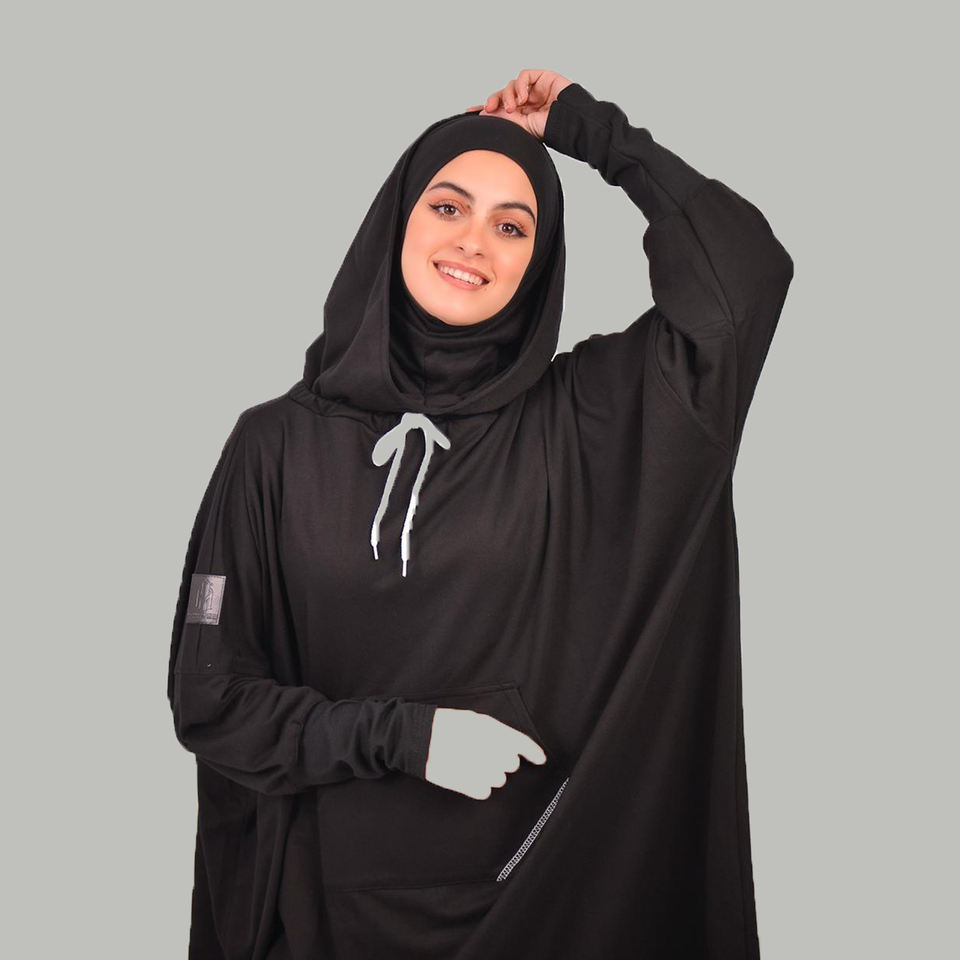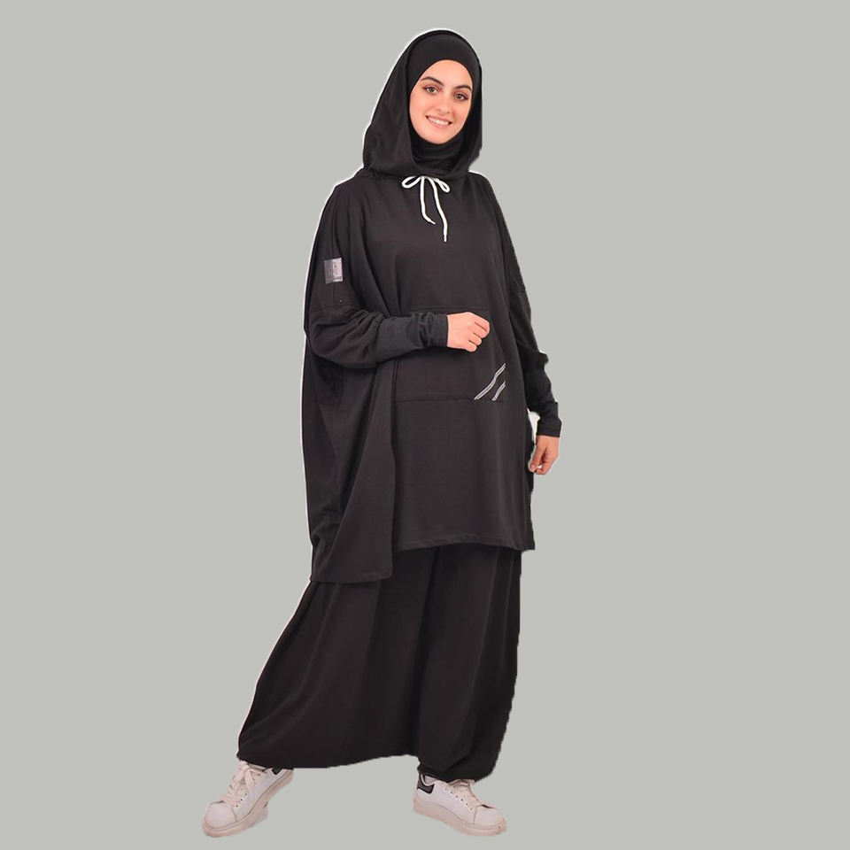 Lanna Muslim High Neck Hooded Sportswear Round Neck Conservative Sportswear Set Muslim Gym Set Soft Elastic Long Robe