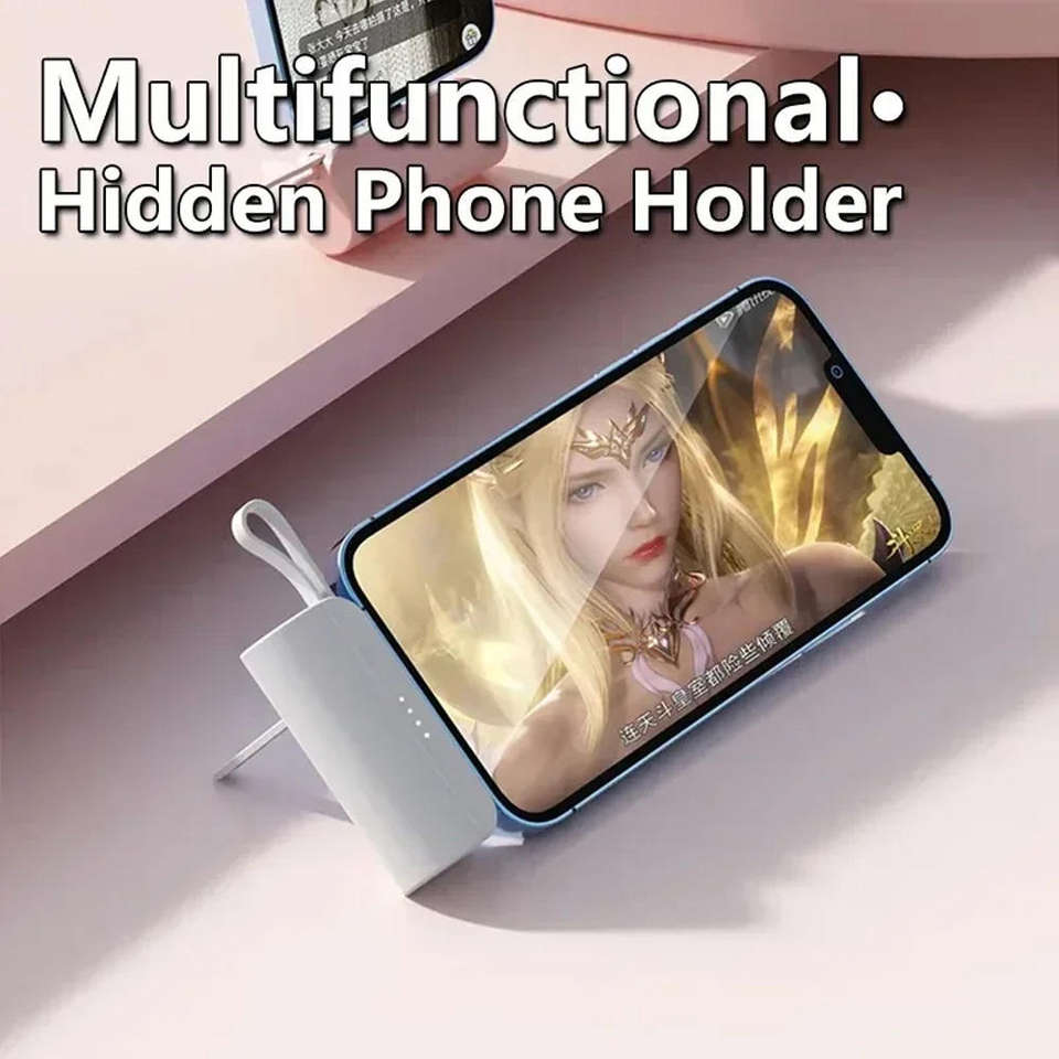 ชื่อสินค้า:พาวเวอร์แบงค์ขนาดเล็กพกพา 5000mAh พร้อมที่วางและสายชาร์จ