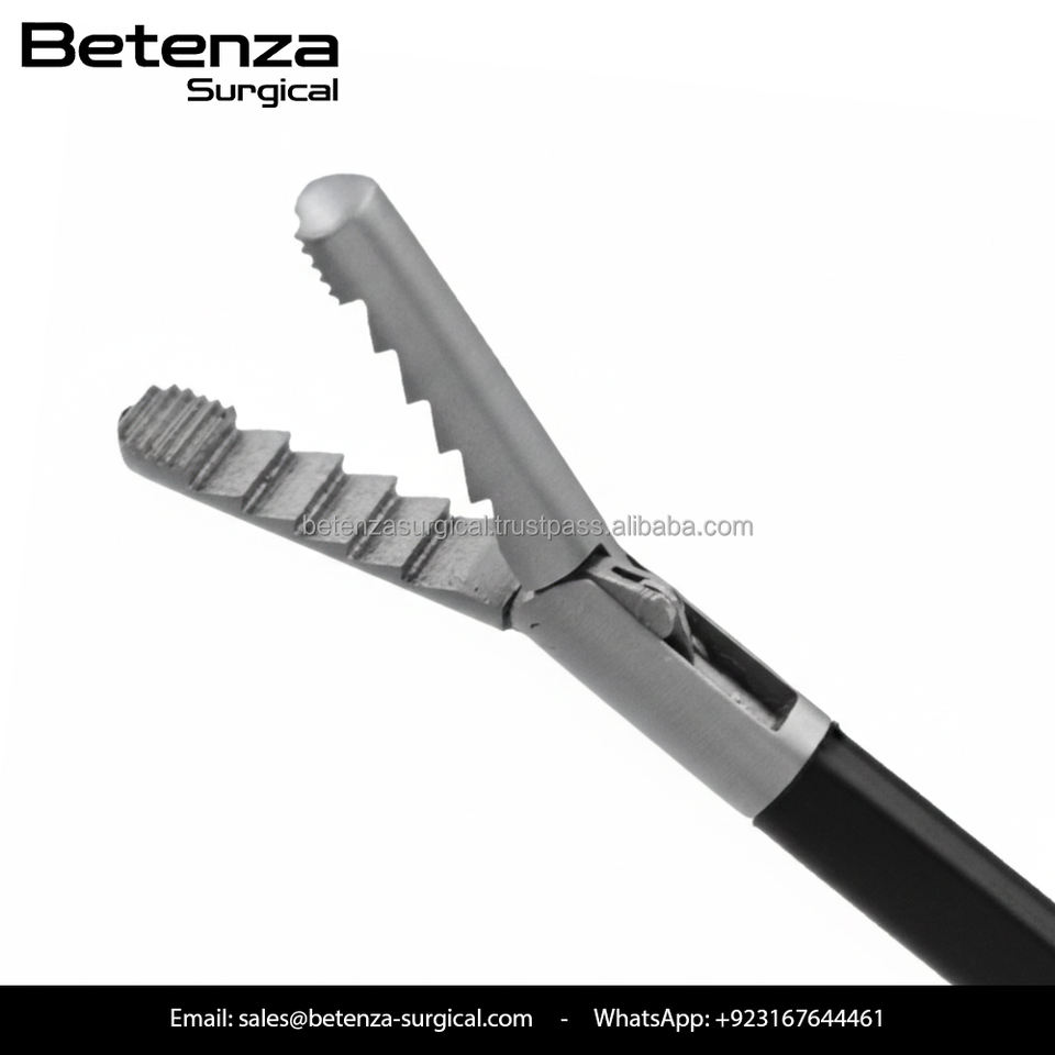 คีมจับแบบปากจระเข้สำหรับการผ่าตัดผ่านกล้องแบบส่องกล้องชนิดตรง ทำจากเหล็กกล้าไร้สนิม มีหลายขนาด ใช้ซ้ำได้