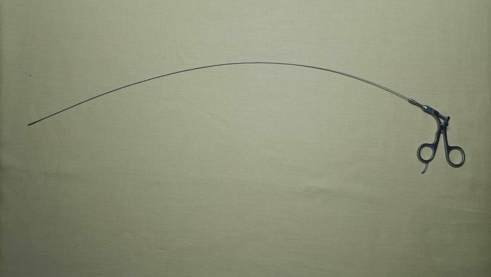 คีมจับแบบโค้งงอชนิด Alligator สำหรับการผ่าตัดผ่านกล้องขนาด 5FR ยาว 60 ซม. ใช้สำหรับการผ่าตัดทางเดินปัสสาวะ การส่องกล้องถังน้ำปัสสาวะ การส่องกล้องมดลูก แบบสองขาจับ ได้รับมาตรฐาน CE ISO
