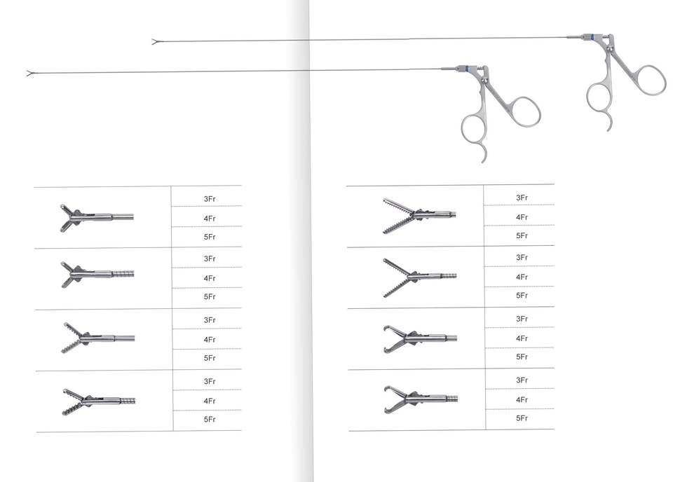 วัสดุ สแตนเลสเกรดทางการแพทย์, ประเภทเครื่องมือ คีมจับปลายเปลี่ยนได้แบบส่องกล้อง, ความยาวโดยรวม 45 ซม., เส้นผ่านศูนย์กลางเพลา 5 มม., หัวคีบเปลี่ยนได้, การประยุกต์ใช้การผ่าตัดส่องกล้องแบบรุกล้ำน้อยที่สุด, ใช้ซ้ำได้ ใช่