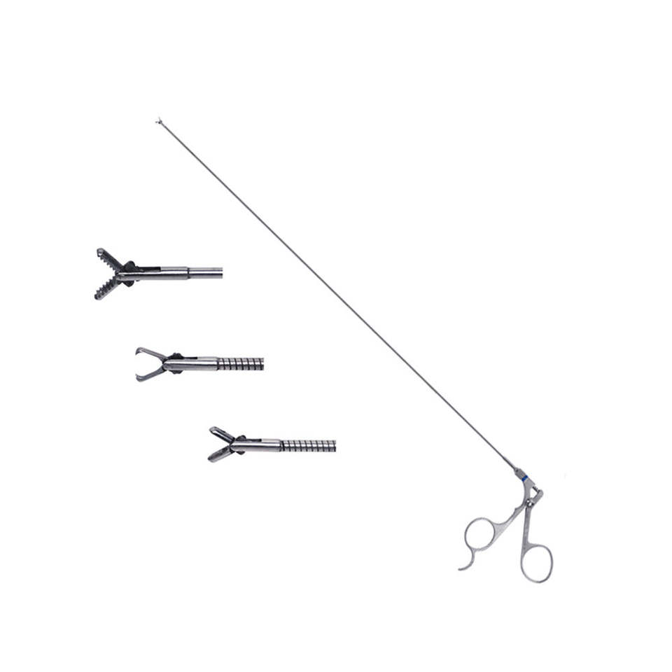 คีมจับแบบเปลี่ยนหัวได้สำหรับการผ่าตัดผ่านกล้อง แบบก้านยาว เครื่องมือผ่าตัดแบบรุกรานต่ำ ใช้ซ้ำได้ทางการแพทย์