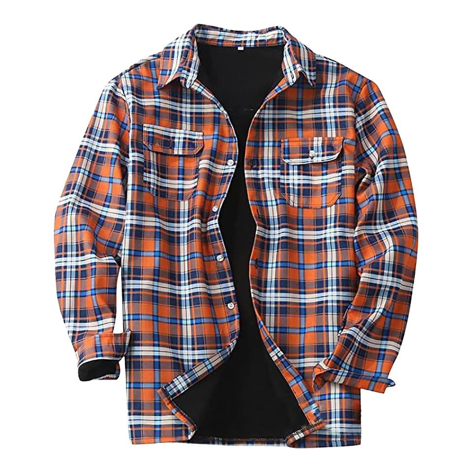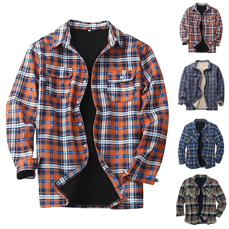 เสื้อแจ็คเก็ตบุนวมมีปกกระเป๋าสำหรับผู้ชาย, เสื้อกันลมทรงสี่เหลี่ยมลายสก็อตลำลองแฟชั่นอบอุ่นสำหรับฤดูใบไม้ร่วงและฤดูหนาว