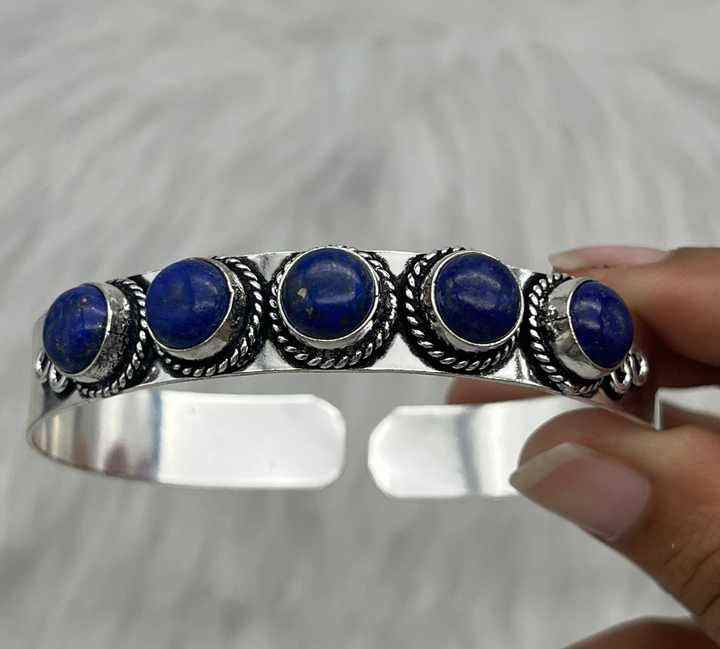 กำไลข้อมือ925เงินทำด้วยมือคลาสสิกกับ Lapis Lazuli เครื่องประดับเงินหรูหราสำหรับวันครบรอบ