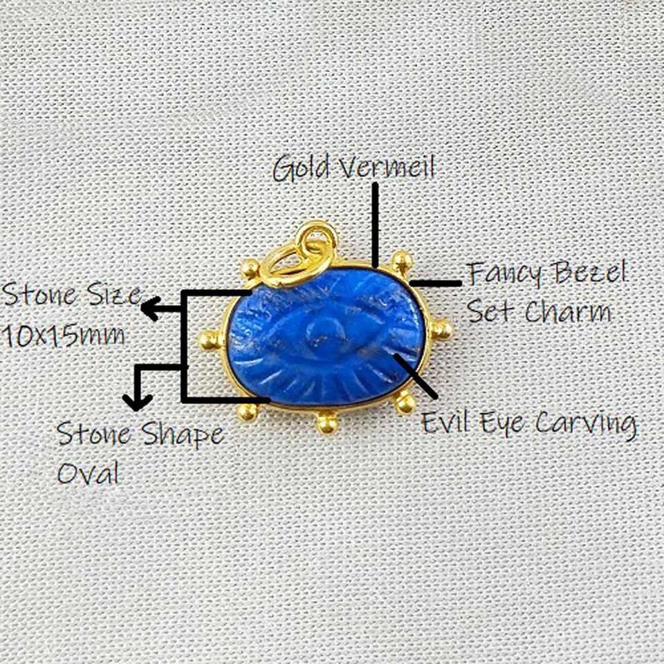Lapis Lazuli แกะสลักตาชั่วร้ายจี้ทอง Vermeil ชุดฝาแฟนซีเครื่องประดับอัญมณีเครื่องประดับขายส่งซัพพลายเออร์