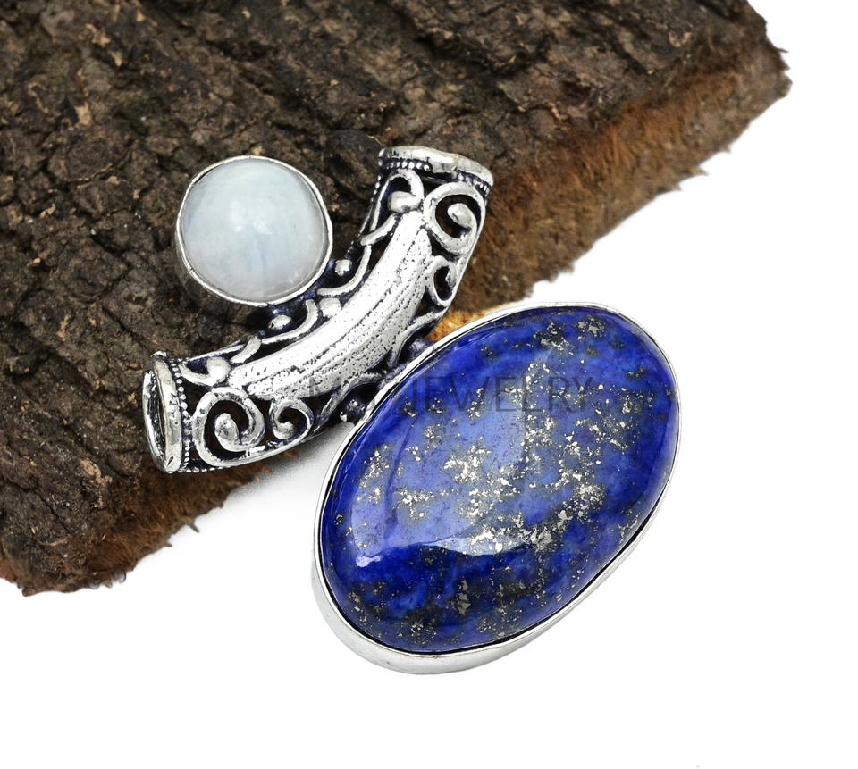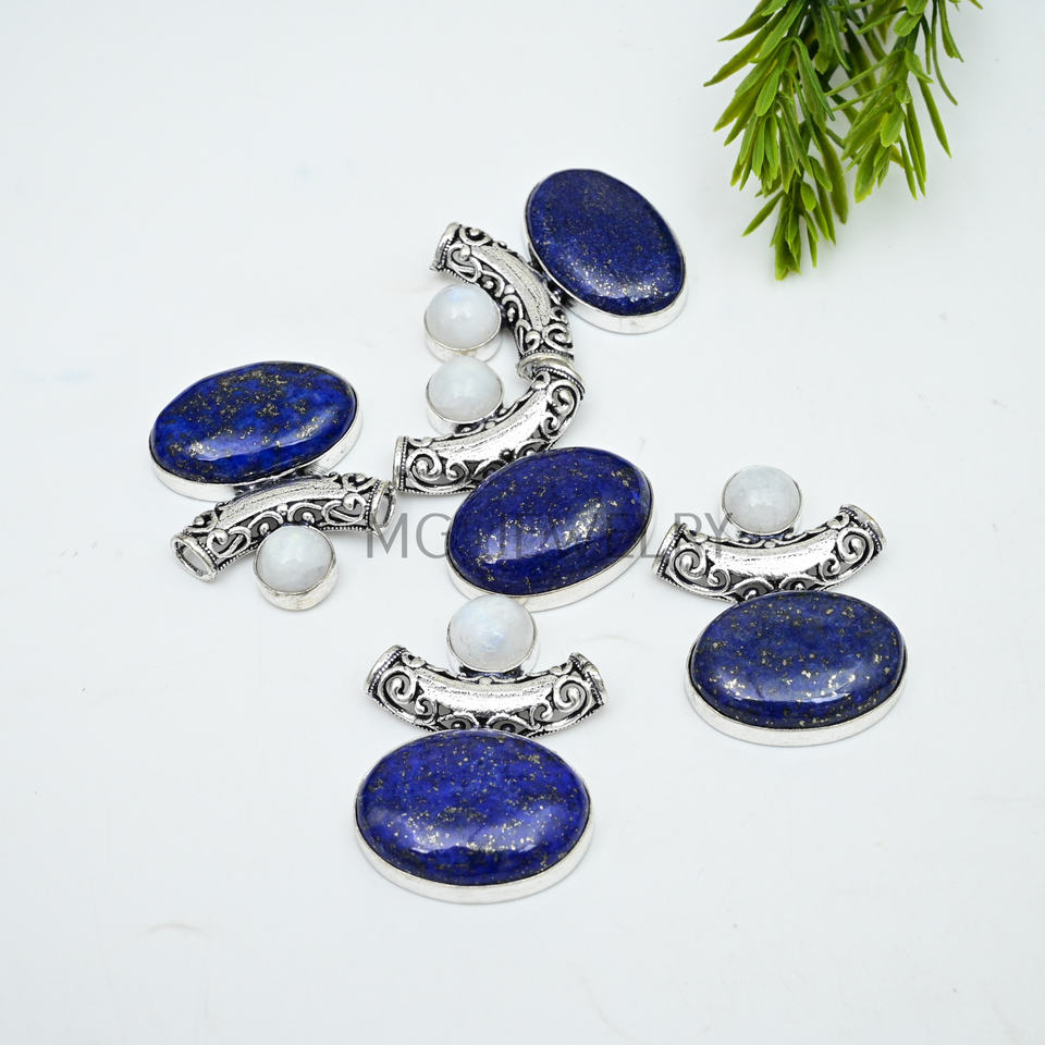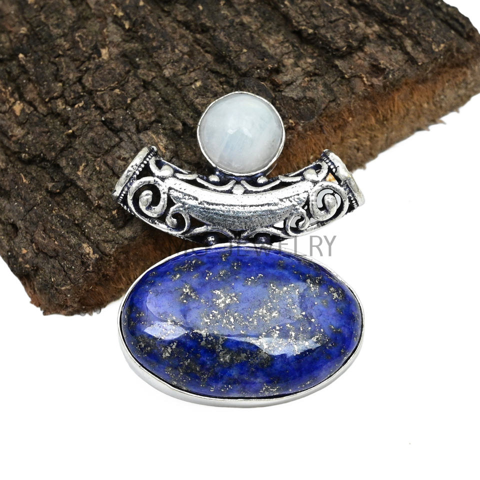 Lapis Lazuli Moonstone Pendant Lapis Lazuli Gemstone Pendant Moon Style Jewelry 925 Sterling Silver Plated Jewelry MGLOT
