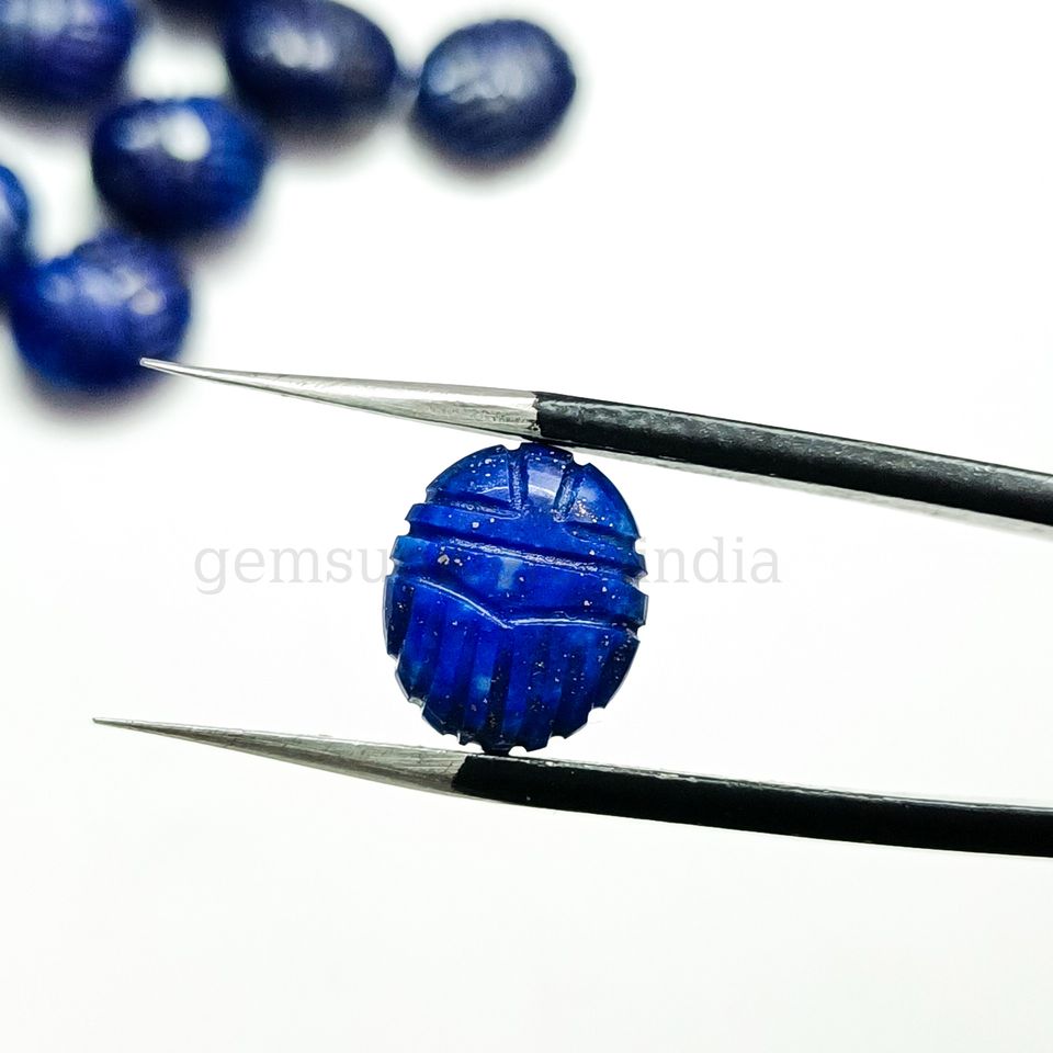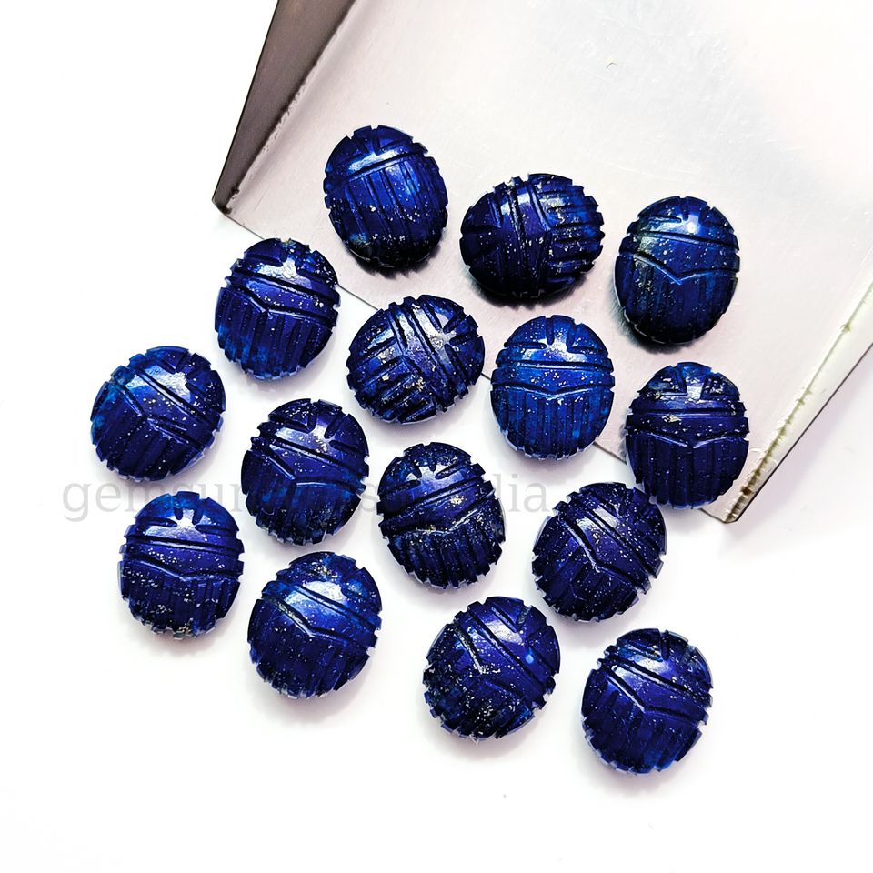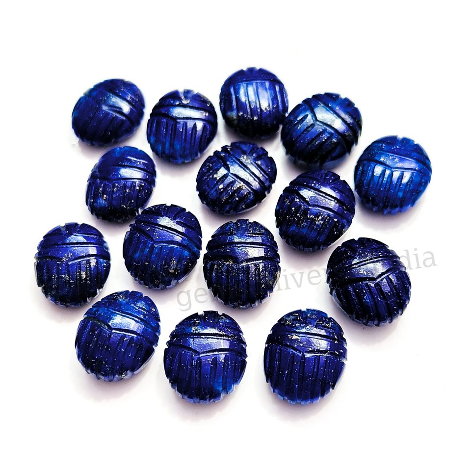 ลาพิส ลาซูลี รูปแมลงปีกแข็งแกะสลักจากอัญมณีธรรมชาติ ลาพิส ลาซูลี รูปด้วงแกะสลัก ลูกปัดแกะสลักรูปแมลง สไตล์โบฮีเมียน รูปแมลงปีกแข็งแบบอียิปต์ ขนาด 12x10 มม.