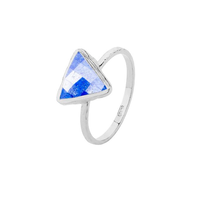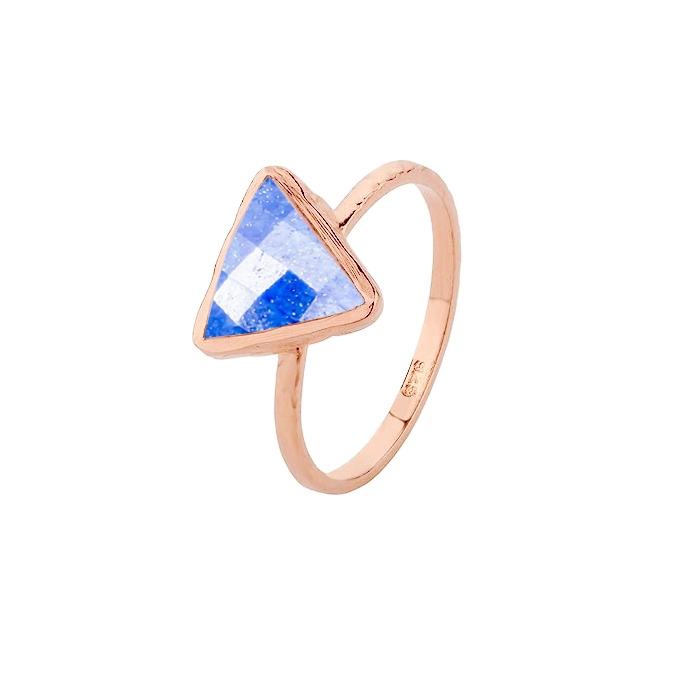 แหวนเงินลาพิสลาซูลี 10 มม.หินสามเหลี่ยมรูปร่าง 925 เงินสเตอร์ลิง 18K ทอง Vermeil วงแหวนลาพิสลาซูลีแหวนแฮนด์เมดแหวน